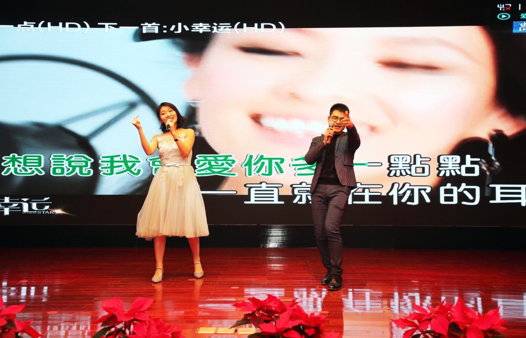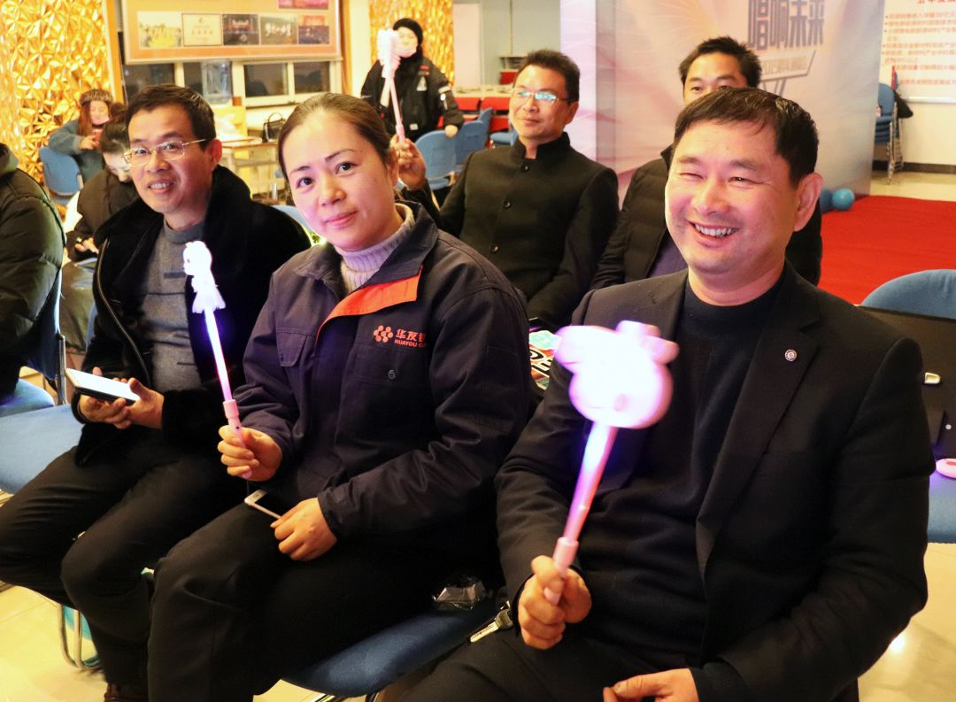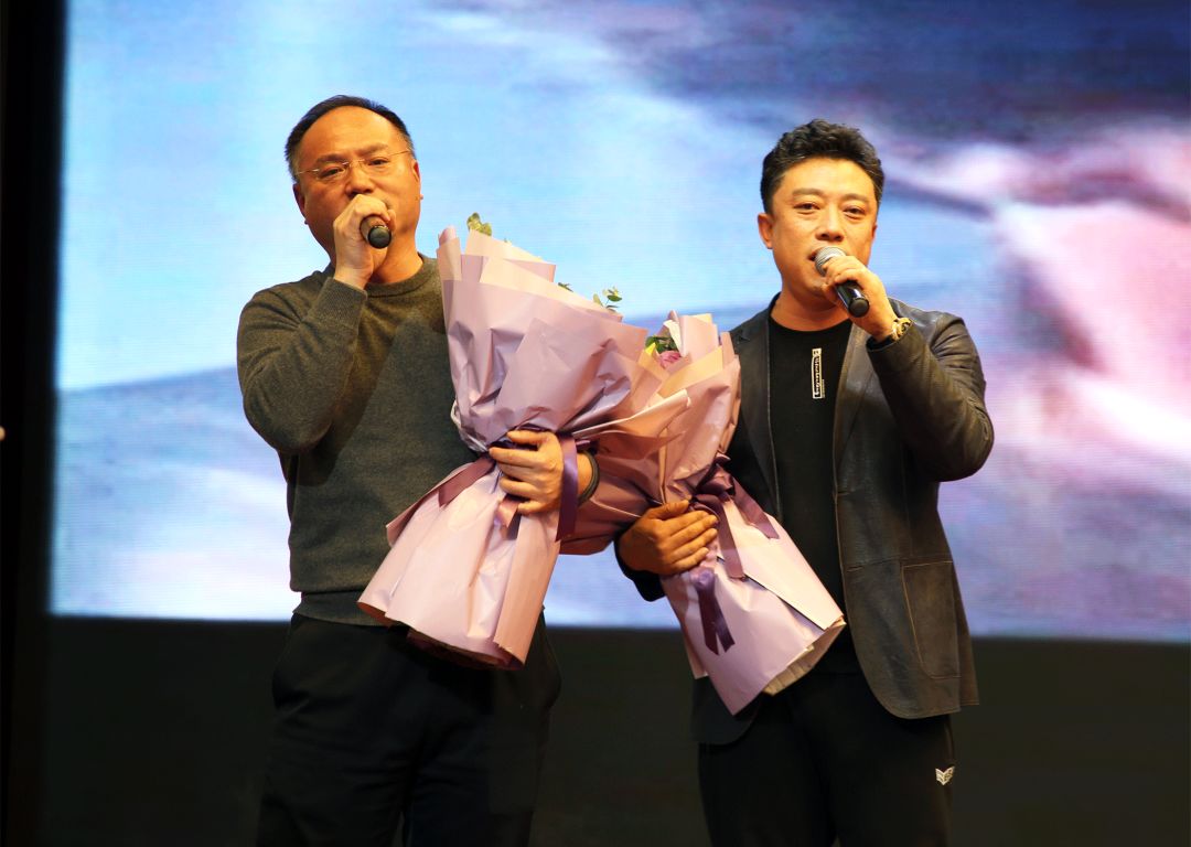 集團(tuán)總裁助理袁忠和品牌建設(shè)總監(jiān)劉強(qiáng),最后也忍不住上臺(tái)秀了一把洪亮的歌喉,贏得滿堂彩!