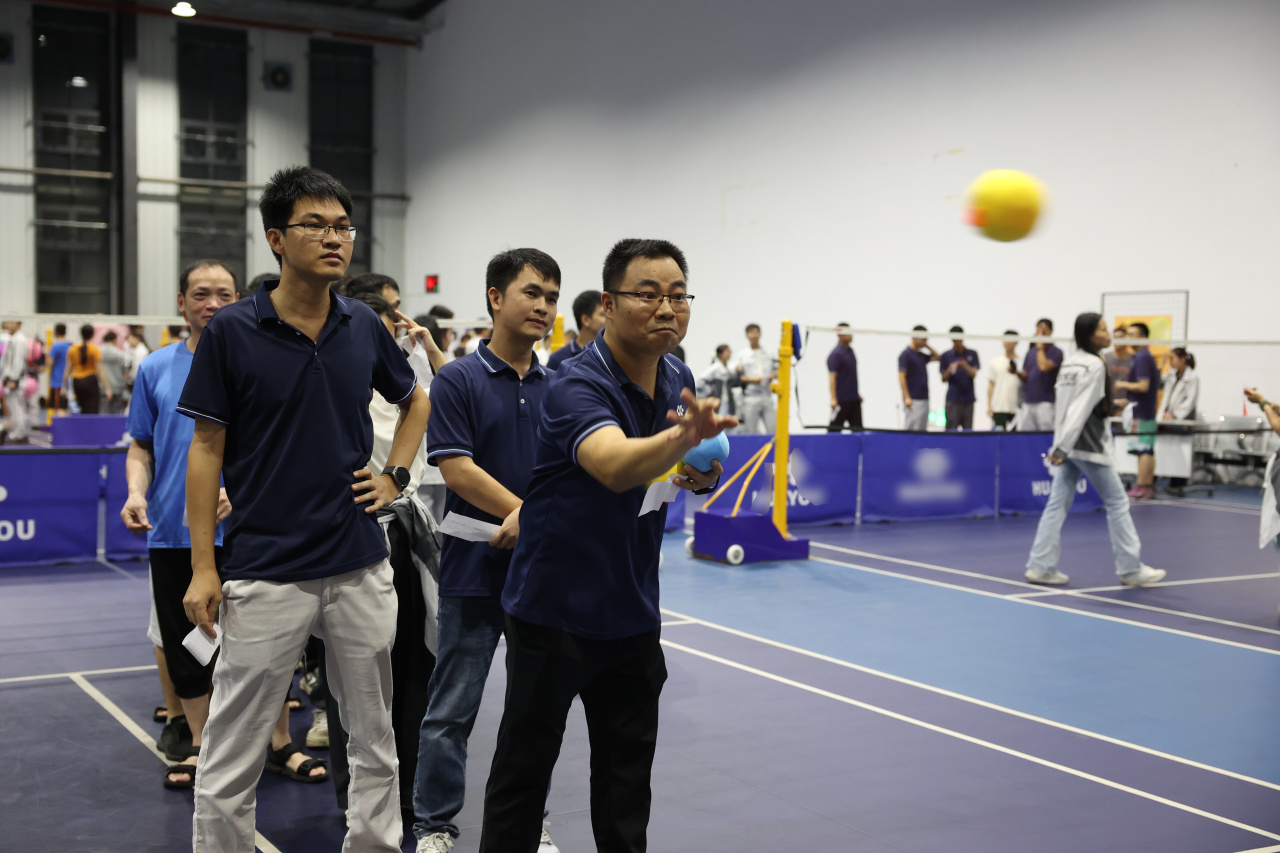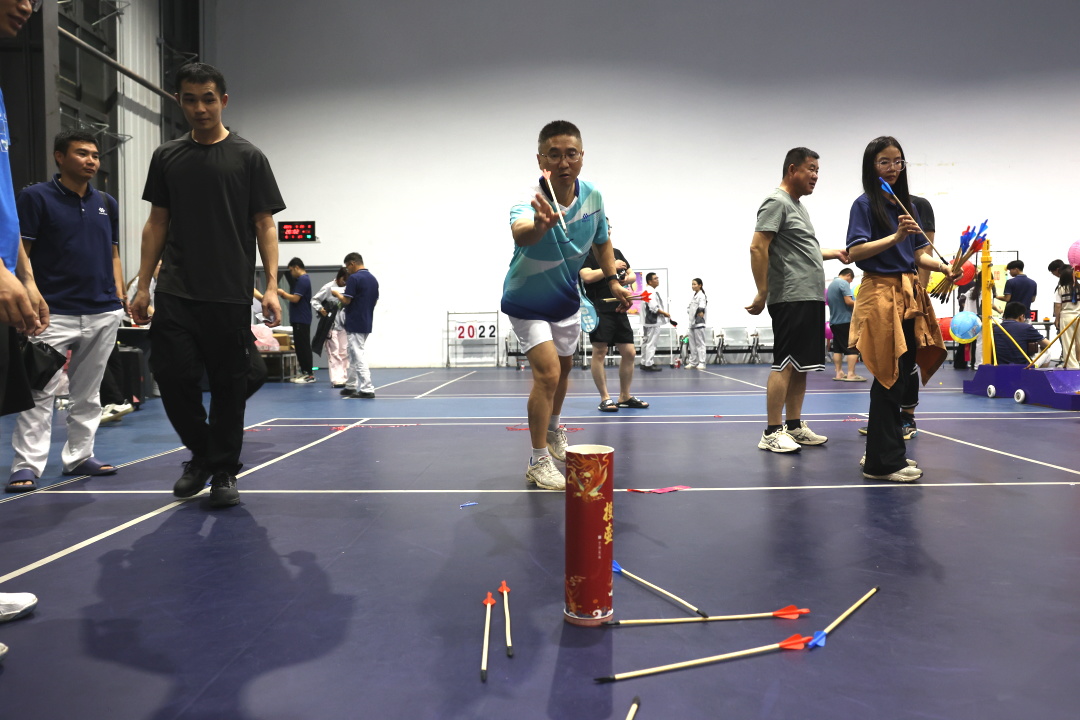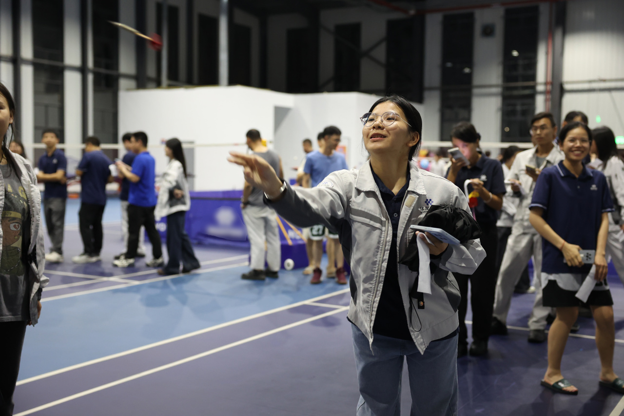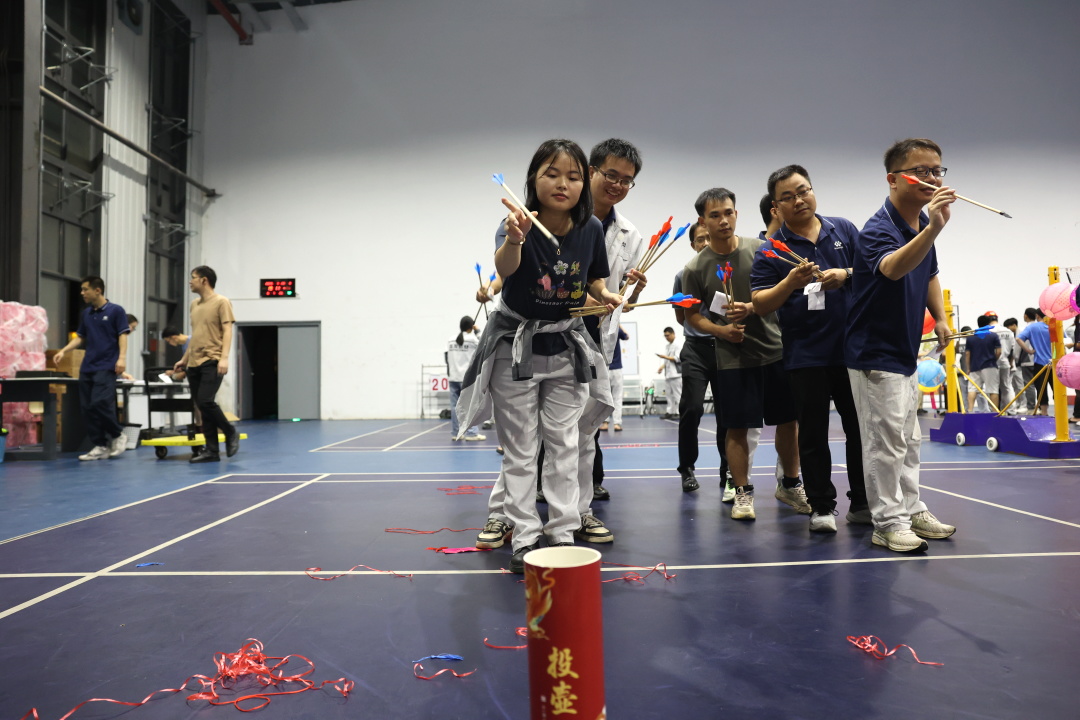 活動(dòng)現(xiàn)場,員工們手持游戲卡,穿梭于各個(gè)項(xiàng)目之間,或凝神思考,或精準(zhǔn)投擲,或活力碰撞,加油聲、喝彩聲、歡笑聲匯成一片,將現(xiàn)場氣氛不斷推向高潮。