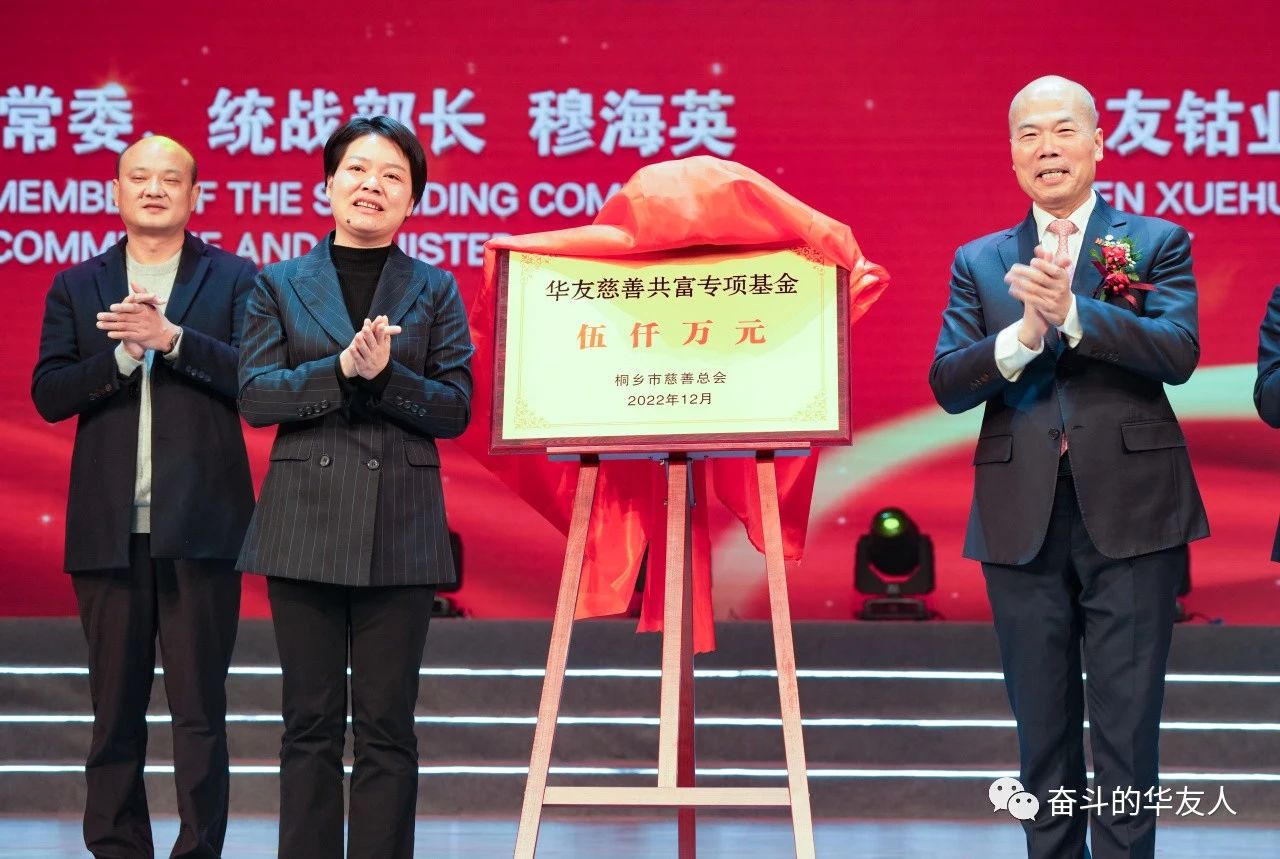 2022年12月19日,在華友鈷業(yè)成立二十周年慶祝大會上,華友捐贈5000萬元成立慈善共富基金,主要用于鄉(xiāng)村振興、低收入家庭大病救助、教育事業(yè)發(fā)展等項目,創(chuàng)下了桐鄉(xiāng)市一次性慈善捐贈最高記錄。
