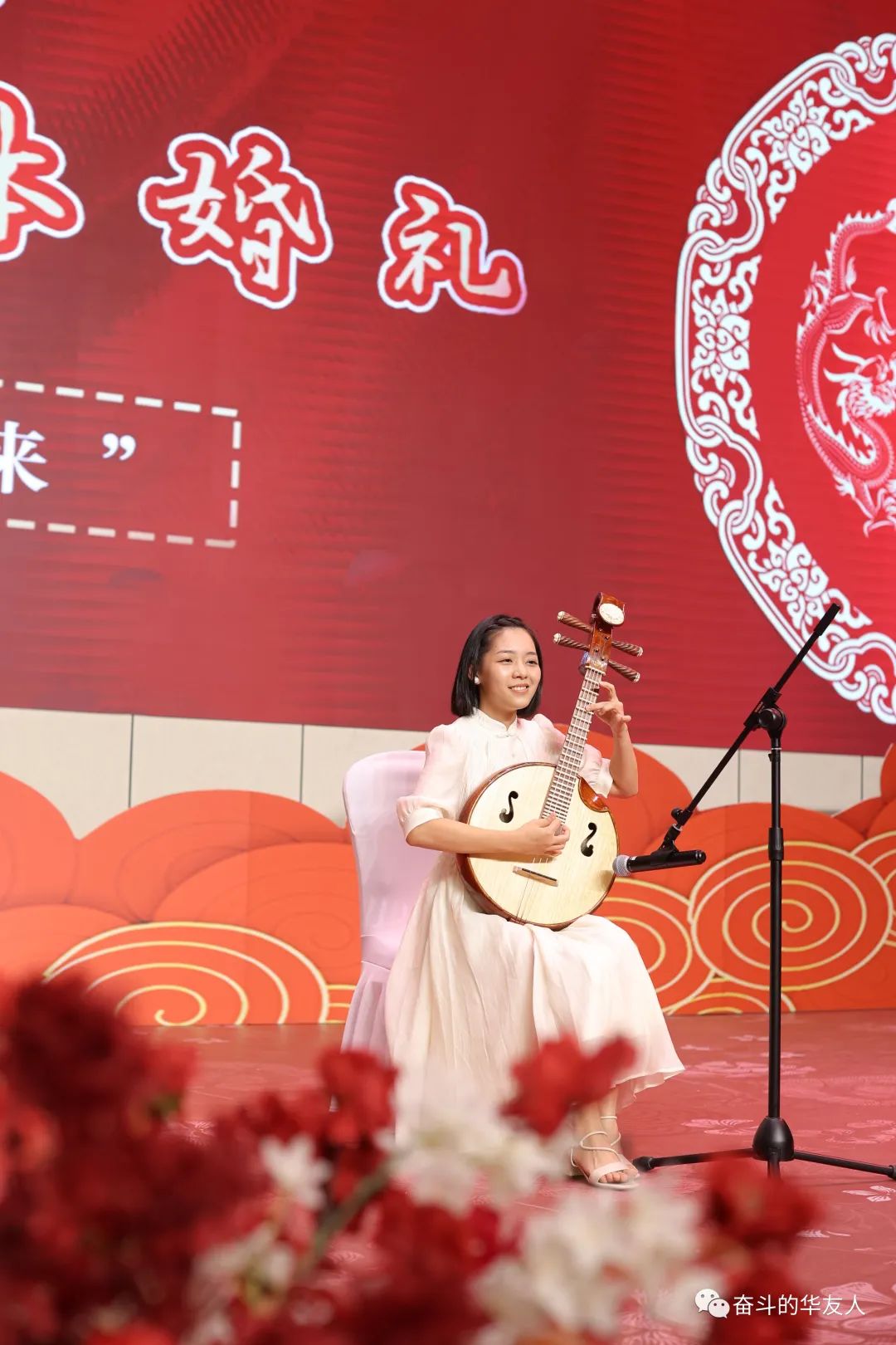 "From this moment onward, you are officially united in marriage, the ceremony is now complete!" The conclusion of the ceremony elevates the atmosphere to a crescendo. Enthusiasm fills the air as everyone is eager to take the stage and offer their well-wishes. Representing the Class of 2022, Qin Bihui and her boyfriend Yao Yunfei deliver a duet using the traditional Chinese instrument, the ruan, bestowing eternal happiness upon the couples. Bride Yan Ningning serenades with the song "Promise," expressing the longing to capture a person's heart and remain inseparable. Various interactive games, including jar-throwing and the blossoming wealth and prosperity game, grace the stage.