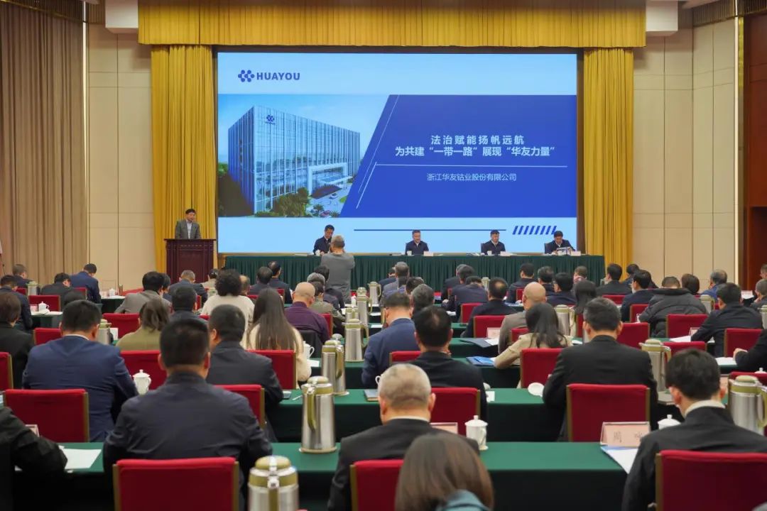 On 7 April, a conference on foreign-related rule of law in Zhejiang Province was held in Hangzhou. Leaders from the Ministry of Justice of the Central Government, leaders from the Provincial Party Committee and provincial government, vice mayors and deputy secretaries from the provincial Department of Justice and cities in the province, vice presidents of foreign-related commercial courts and representatives of arbitrators attended the conference. As the only enterprise, Huayou was invited to participate in the conference. Fang Qixue, Vice Chairman and Senior Vice President of Huayou, participated in the conference and shared the company's legal practice and experience of "going abroad" for many years.
