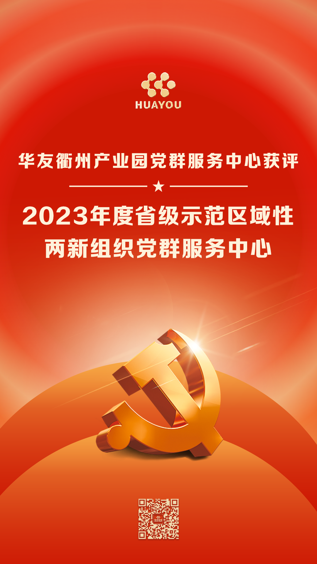 The Party Service Centre of Huayou Quzhou Industrial Park was awarded as the Provincial Model Regional Party Service Centre for Two New Organisations in 2023.