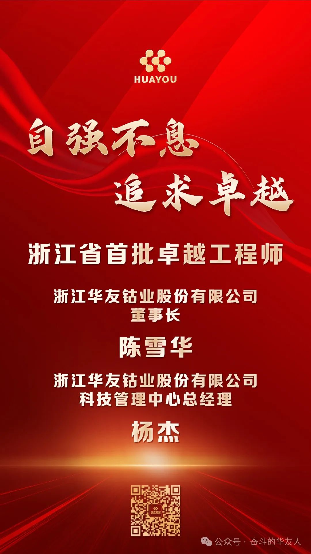 Recently, the Department of Economy and Information Technology of Zhejiang Province announced the list of outstanding engineers in Zhejiang Province. Chen Xuehua, Chairman of the Board of Directors of the Group, and Yang Jie, General Manager of the Science and Technology Management Center, were selected as the first batch of Engineers of Excellence in Zhejiang Province.
