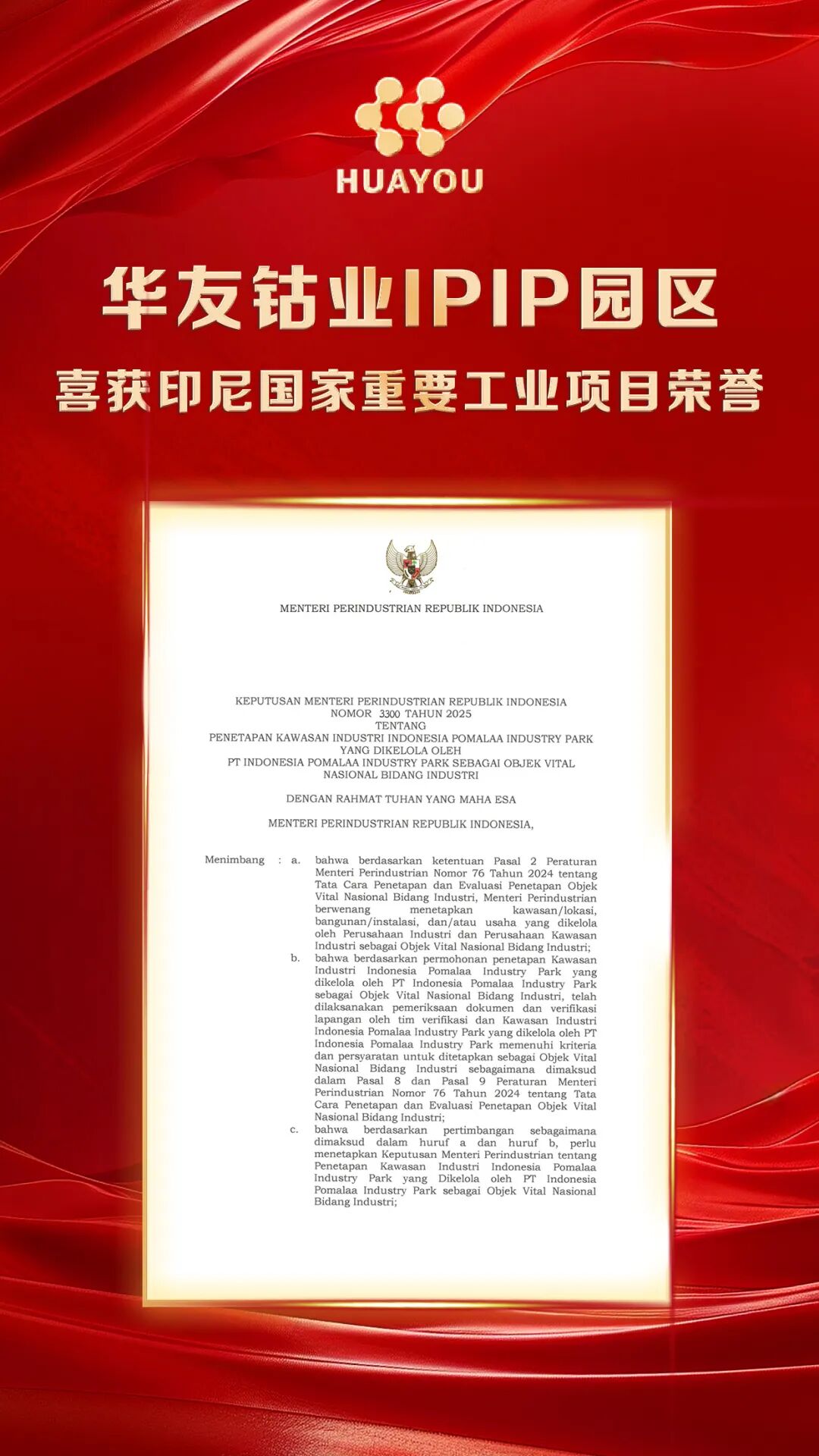 National Recognition! Huayou IPIP Industrial Park Wins Honor as Indonesia's Important Industrial Project