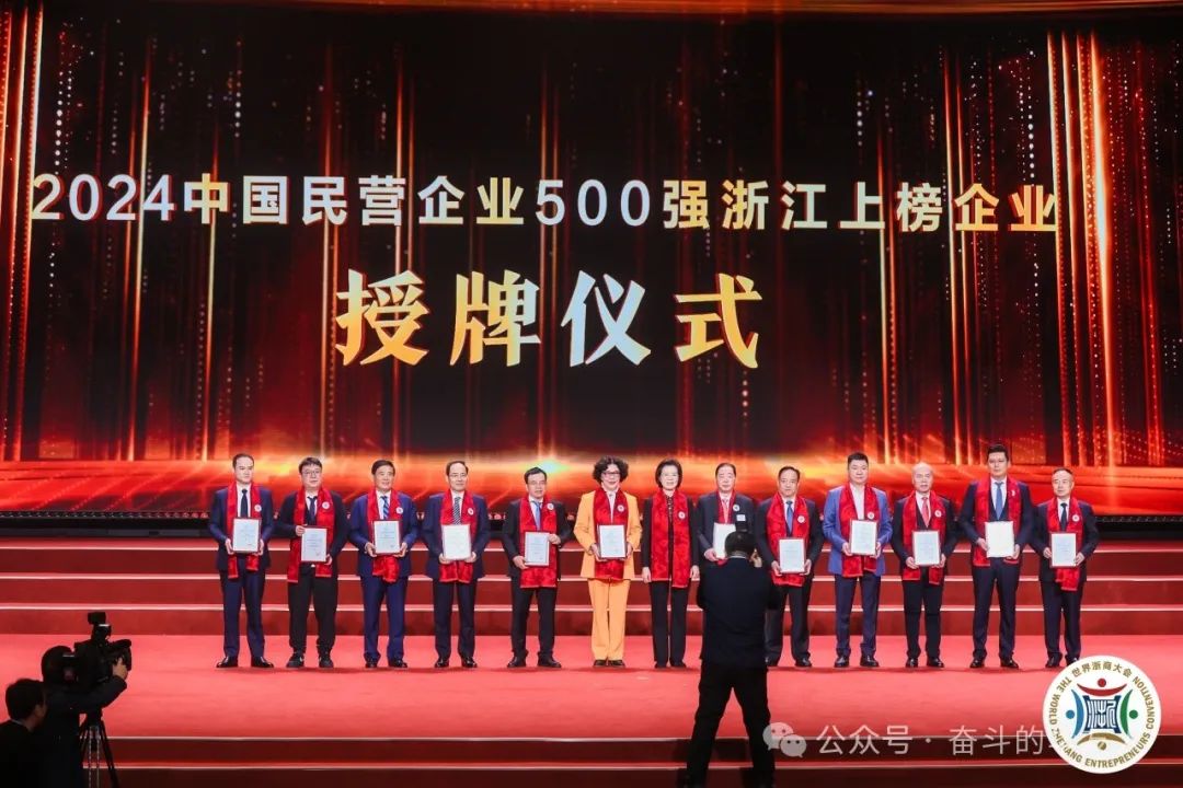 今天(11月28日),第七屆世界浙商大會在浙江省人民大會堂開幕,大會為2024中國民營qm球盟會·(中國)球盟會500強(qiáng)浙江上榜qm球盟會·(中國)球盟會代表授牌,集團(tuán)董事長陳雪華登臺領(lǐng)獎。