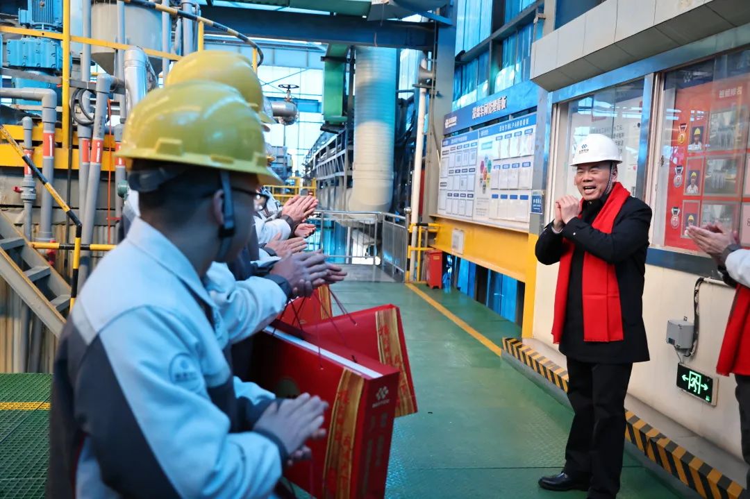 1月27日,華友新材料產(chǎn)業(yè)集團(tuán)開展“年三十”慰問在崗員工活動(dòng),集團(tuán)高級(jí)副總裁、新材料產(chǎn)業(yè)集團(tuán)總裁徐偉,新材料產(chǎn)業(yè)集團(tuán)副總裁劉秀慶深入生產(chǎn)制造一線、安環(huán)消防部門及研發(fā)單位等地,向在崗員工送去親切的慰問和誠摯的關(guān)懷,并衷心祝愿大家新的一年幸福安康、闔家歡樂、巳巳如意。
