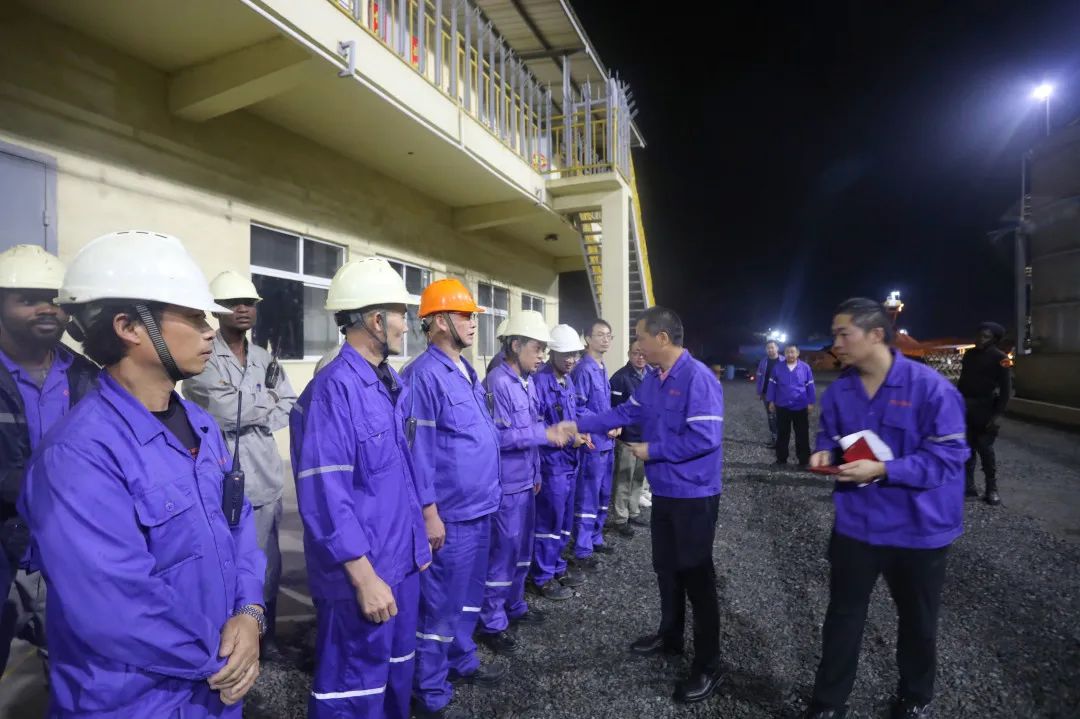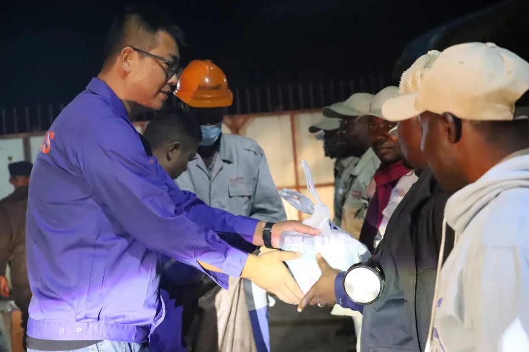 非洲資源產(chǎn)業(yè)集團(tuán)領(lǐng)導(dǎo)一行,帶著公司滿滿的關(guān)懷,奔赴各個(gè)值班崗位。每到一處,領(lǐng)導(dǎo)們都與員工親切握手,將承載著美好祝福的紅包和物資送到他們手中,讓堅(jiān)守在異國他鄉(xiāng)的員工們感受到家一般的溫暖。