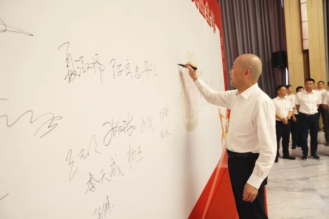 “我承諾:百日沖刺、決勝全年!華友必勝!必勝!必勝!”全體干部在陳雪華董事長帶領(lǐng)下莊嚴(yán)宣誓,并在簽名墻鄭重簽名。一筆一劃,皆是使命;一字一句,滿載擔(dān)當(dāng),凝聚成“使命必達(dá)”的華友力量!