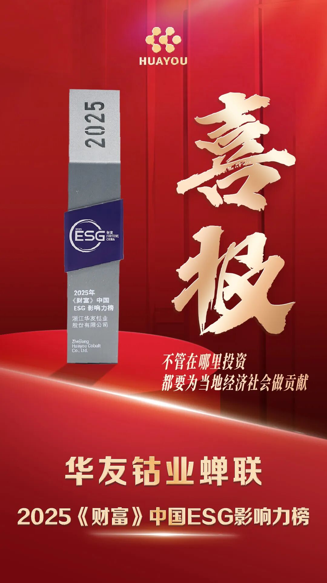 華友鈷業(yè)蟬聯(lián)2025《財(cái)富》中國(guó)ESG影響力榜