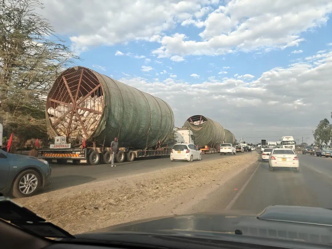 而這座“巨龍”的誕生之路,布滿荊棘。2025年6月24日,轉(zhuǎn)型窯首吊現(xiàn)場,起重指揮員的哨聲劃破長空。直徑5.6米、長達110米的轉(zhuǎn)型窯被切割成11段,歷經(jīng)三個月的海上漂泊才運抵現(xiàn)場。“那艘船中途接到臨時任務,在海上多漂了兩個月。這種完全不可控的物流是我們項目建設中的‘頭號大敵’”鋰鹽項目部副總經(jīng)理苦笑著搖頭,“我們每天都盯著船舶軌跡圖,心情就像坐過山車?!表椖拷ㄔO有著復雜的物流鏈路:從國內(nèi)發(fā)出的貨物經(jīng)過長途海運,經(jīng)過南非德班港卸貨,完成清關(guān)后,還需再次在津巴邊界進行二次通關(guān)。此后,才是更為嚴峻的、長達1700公里的陸路運輸?!皬牡掳嗟浆F(xiàn)場的這1700公里,每一步都充滿變數(shù)?!彼a充道,語氣凝重,“車禍、超限運輸?shù)膶徟?、乃至當?shù)貜碗s的人文環(huán)境,任何一環(huán)出現(xiàn)意外,都可能導致工期無限期延遲?!?/span>