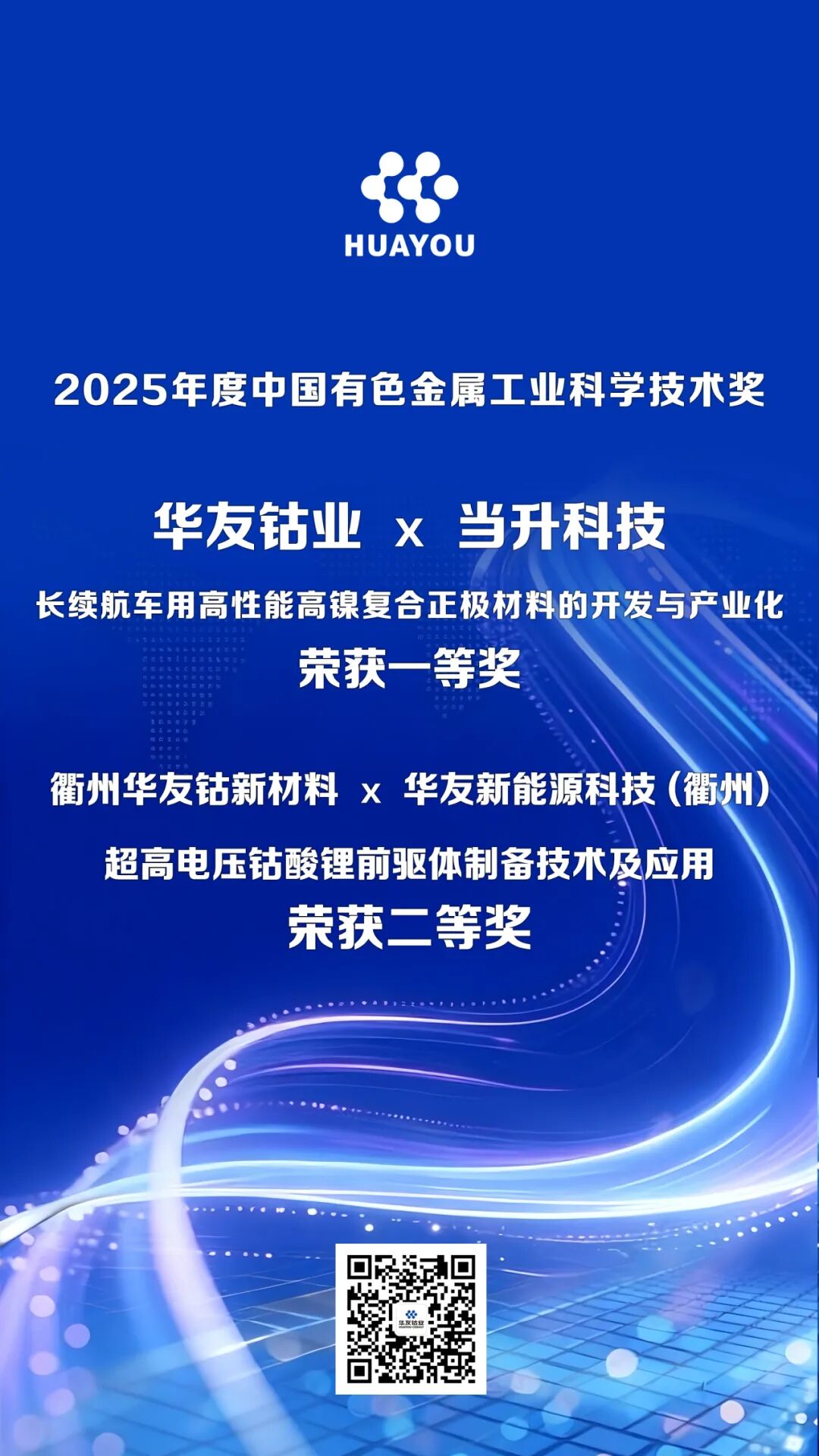 近日,2025年度中國有色金屬工業(yè)科學(xué)技術(shù)獎獲獎名單揭曉,華友鈷業(yè)憑借兩大核心產(chǎn)品的技術(shù)突破與產(chǎn)業(yè)化深耕,斬獲兩大獎項。其中,華友鈷業(yè)與北京當(dāng)升材料科技股份有限公司聯(lián)合攻關(guān)的“長續(xù)航車用高性能高鎳復(fù)合正極材料的開發(fā)與產(chǎn)業(yè)化”項目,榮登一等獎榜單;由衢州華友鈷新材料有限公司牽頭,華友新能源科技 (衢州) 有限公司深度參與的“超高電壓鈷酸鋰前驅(qū)體制備技術(shù)及應(yīng)用”項目,斬獲二等獎。