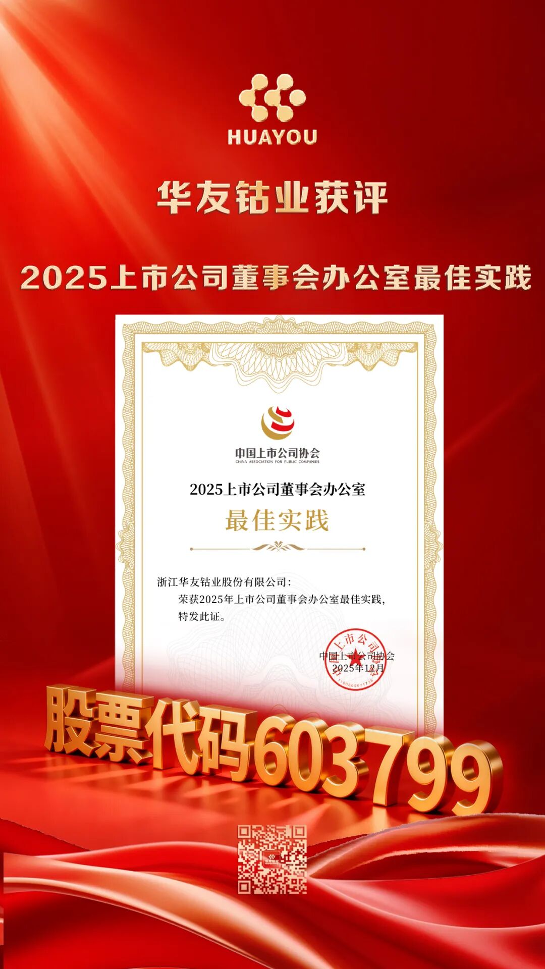 中國上市公司協(xié)會發(fā)布 “2025上市公司董事會辦公室最佳實踐”評選結(jié)果,公司成功入選該權(quán)威榜單。該獎項關(guān)注董事會辦公室在戰(zhàn)略支持、合規(guī)運營、治理協(xié)調(diào)與執(zhí)行保障等方面的作用,彰顯了公司在治理機制建設(shè)與運作方面的系統(tǒng)化、專業(yè)化水平。